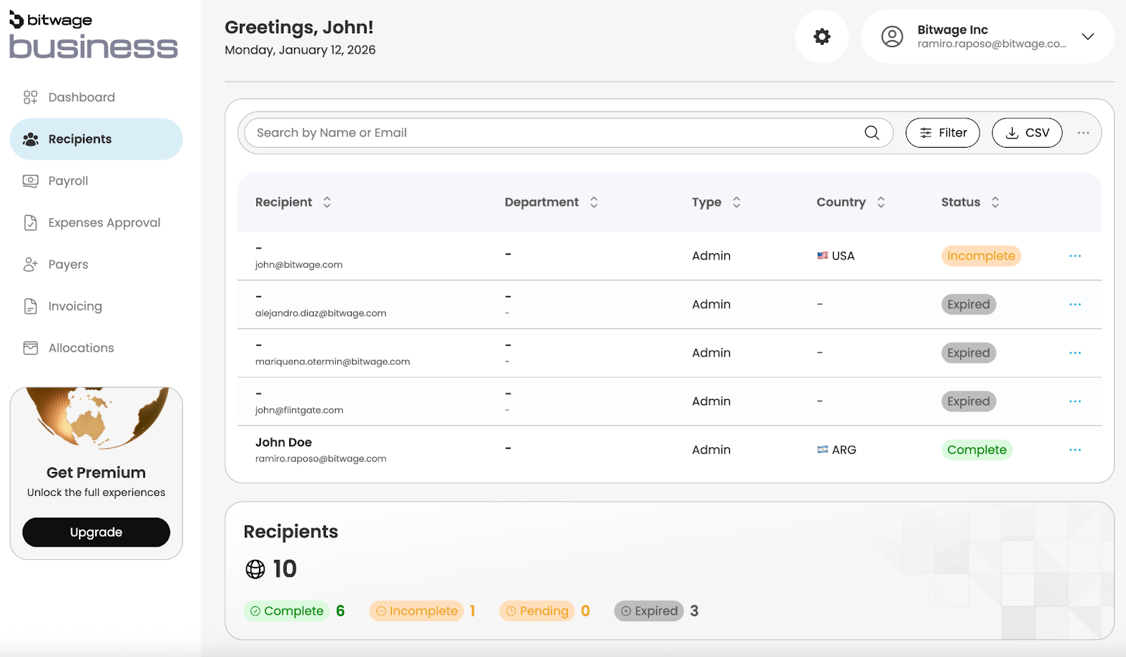 - Recipients incomplete: remind workers to finish setup before payroll