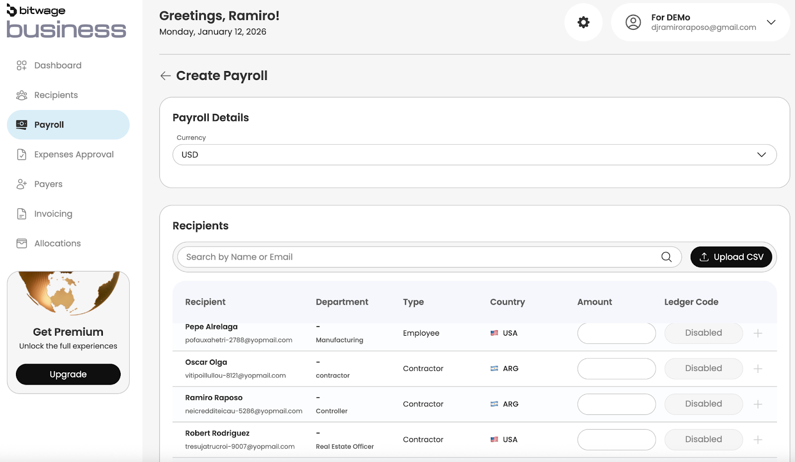 - You complete the signup form in Bitwage Business.